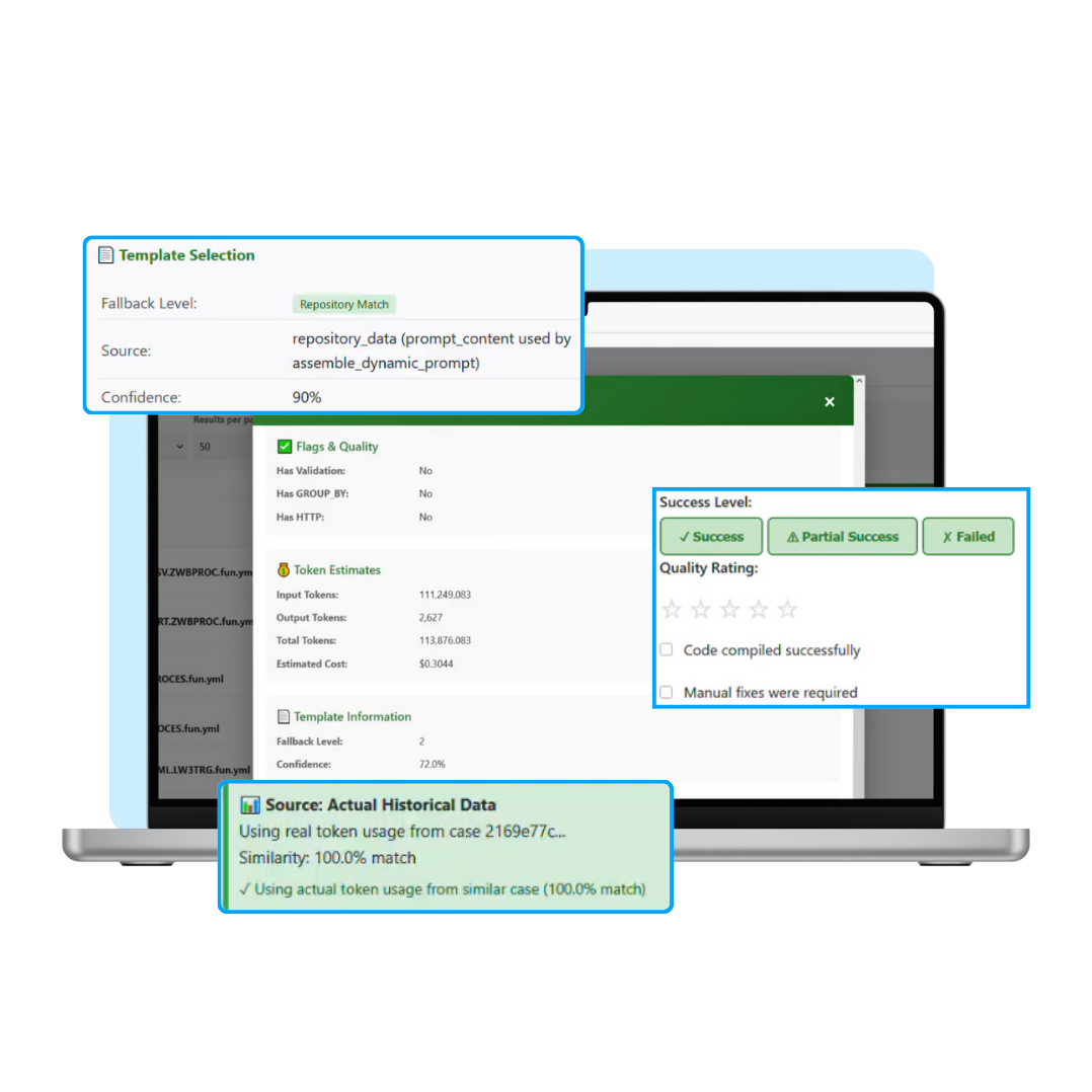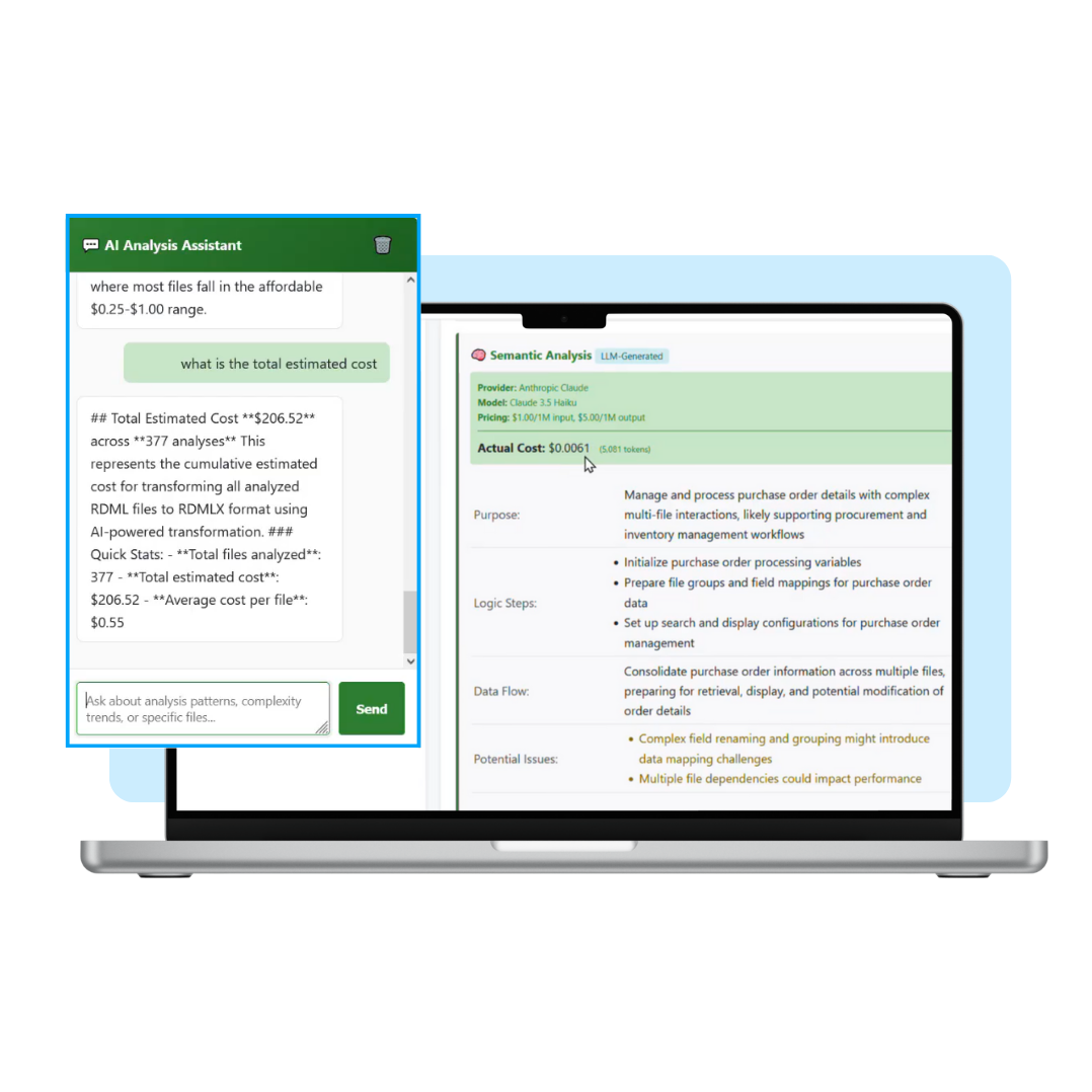 リファクタリングにかかるAIのコスト、労力、影響について、データに基づいた迅速な見積もりを生成します。