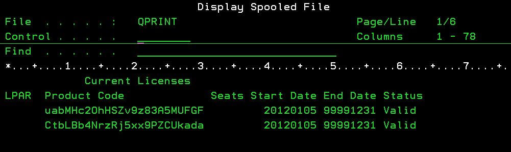 (5) WRKSPLFコマンドでジョブのスプールからライセンスの適用状況をご確認ください。